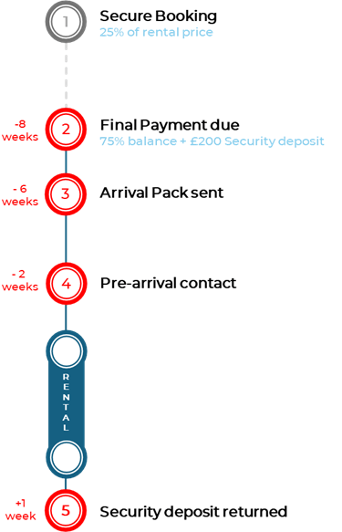 The booking and payment timings and shown below in 5 steps. If you have any further questions then please do not hesitate to Contact Us.